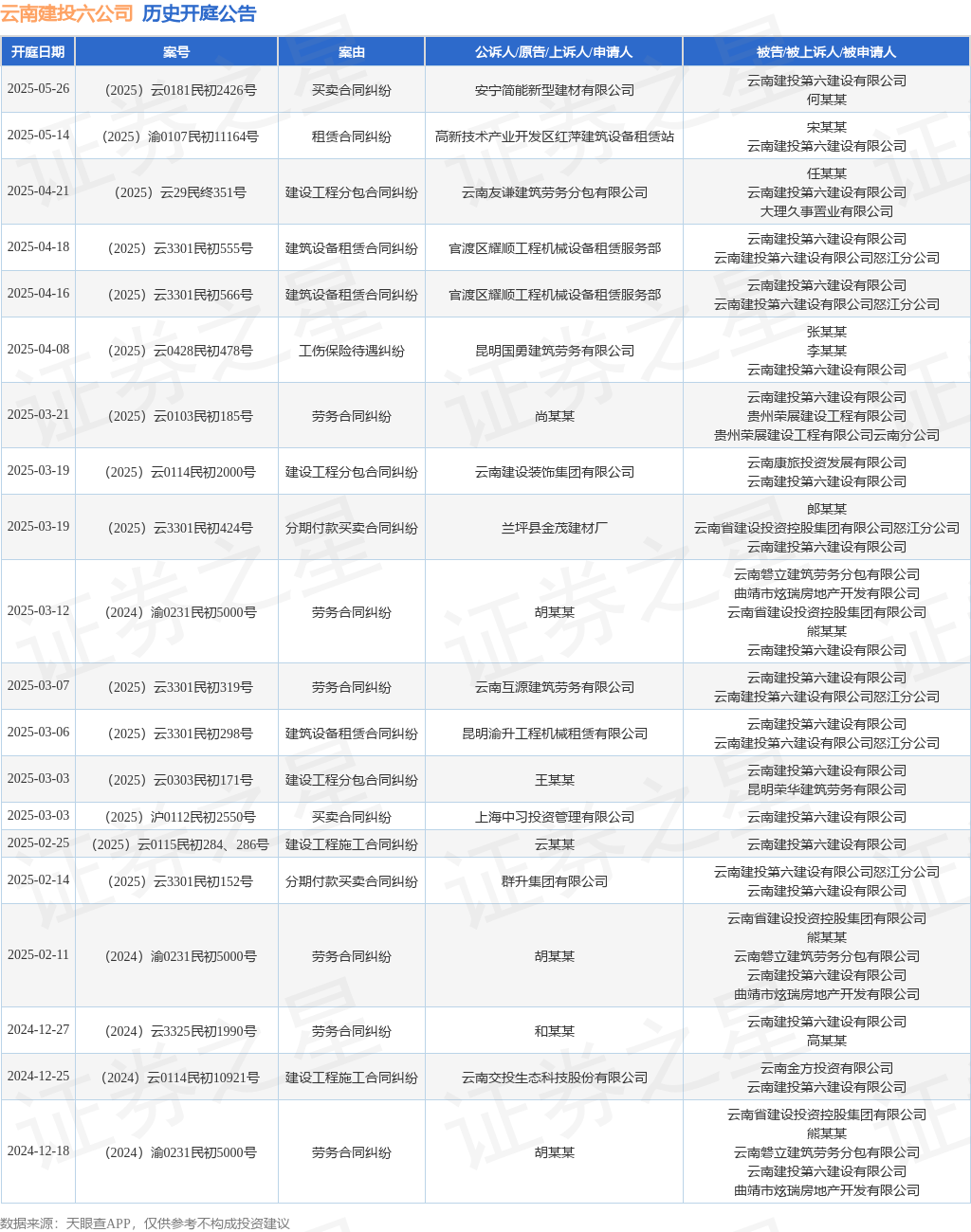 本站消息配操盘配操盘,根据天眼查APP显示,近日公布了一则云南建投第六建设有限公司作为被告/被上诉人的开庭公告,详细内容如下: